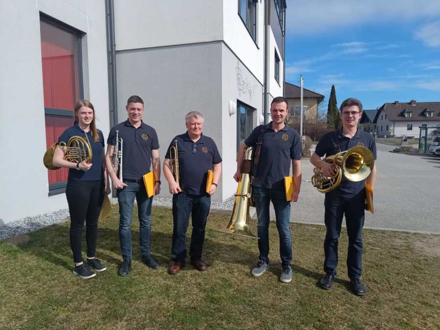Josef Weber, Johanna Kohl, Stefan Hofstätter, Michael Kohl und Martin Lampeitl sind das „Bläserquintett“.